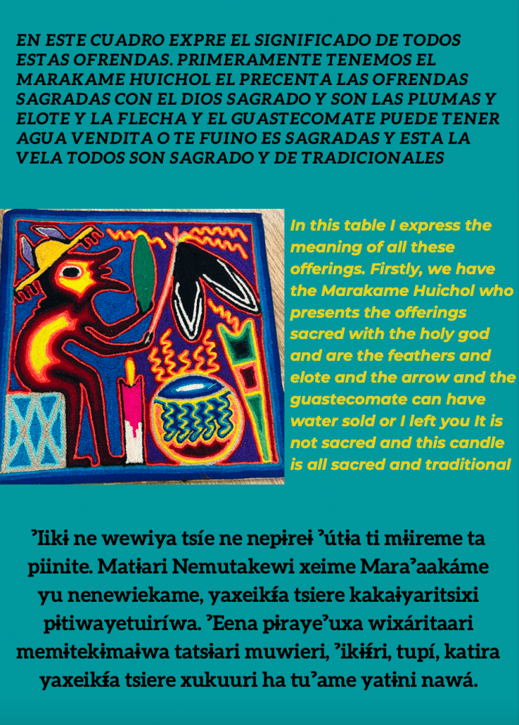 Traducción de texto en Español al Wixárika por Félix Bonilla.